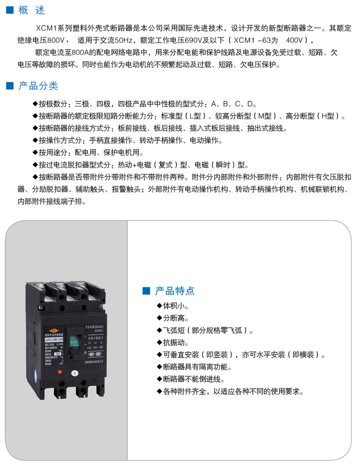產(chǎn)品名稱:XCM1系列塑料外殼式斷路器